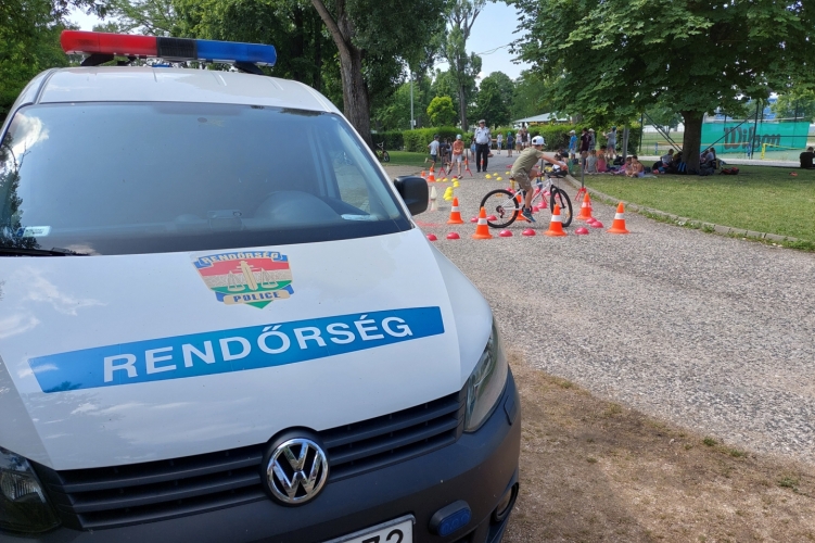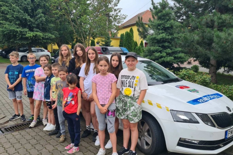 A rendőrég szakemberei prevenciós foglalkozás keretein belül hívják fel a biztonságra a táborozó gyerekek figyelmét Székesfehérváron.