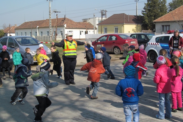 Az Esztergomi Rendőrkapitányság munkatársa baleset-megelőzési programmal és láthatóságot segítő eszközökkel készült az óvodásoknak.