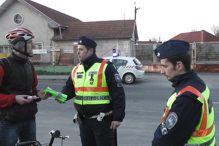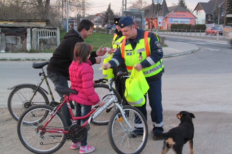 A Hajdú-Bihar Megyei Rendőr-főkapitányság munkatársai 2014. március 6-án baleset-megelőzési célzattal kerékpárosok részére lámpákat, illetve láthatósági mellényeket osztottak Debrecenben.
