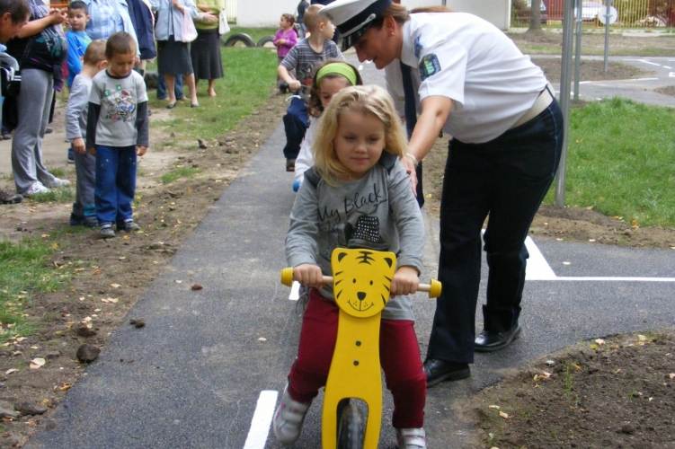 A gyermekek szabályos közlekedésre nevelését segítő tanpályát avattak a békéscsabai Lencsési Óvoda egyik intézményében.