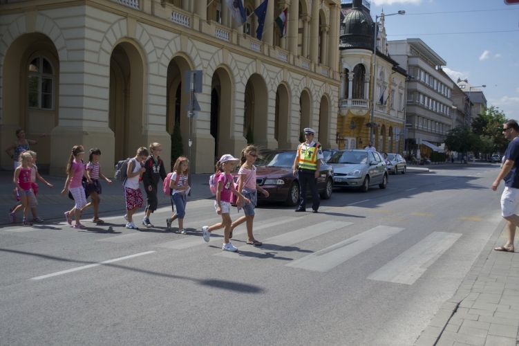 Zebrák figyelték a gyalogos gyerekeket Veszprémben.