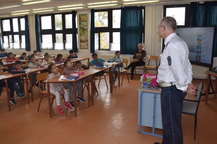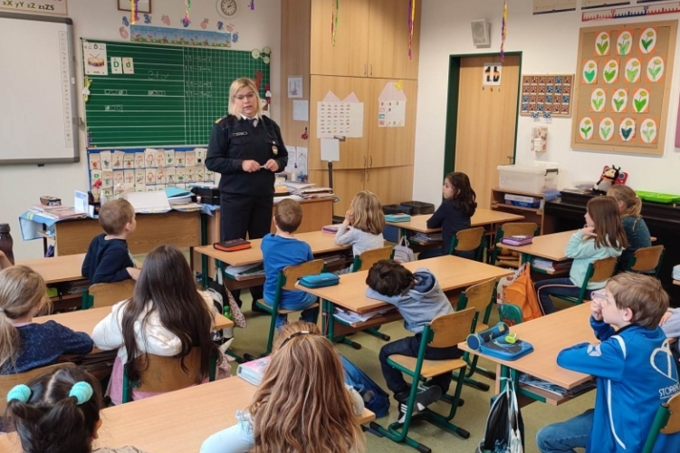 A Záhonyi Rendőrkapitányság Közlekedésrendészeti Alosztály vezetője beszélt a gyereknek a biztonságos közlekedés szabályairól.