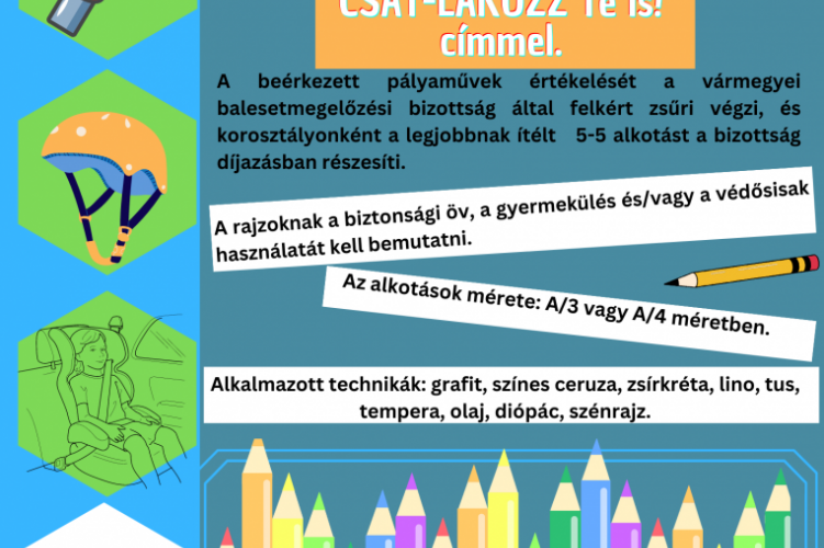 A Jász-Nagykun-Szolnok Vármegyei Rendőr-főkapitányság Balesetmegelőzési Bizottság rajzpályázatot hirdet „CSAT-LAKOZZ Te is!” kampánya keretében.