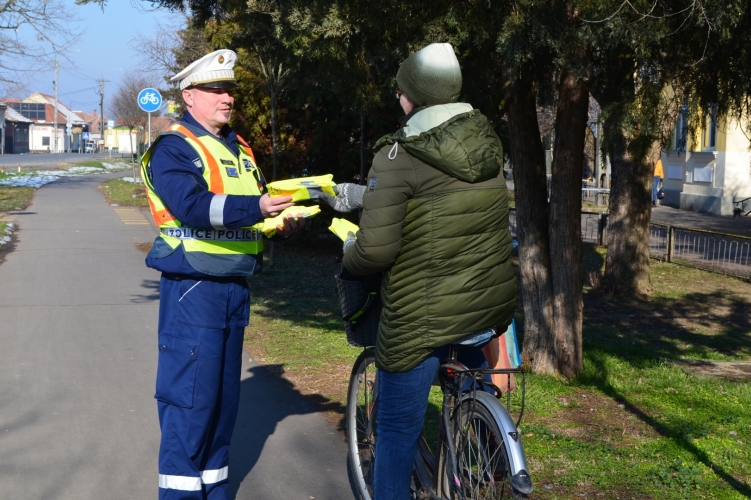 A berettyóújfalui rendőrök hasznos prevenciós tanácsok mellett láthatósági mellényeket osztottak ki a kerékpárosoknak.