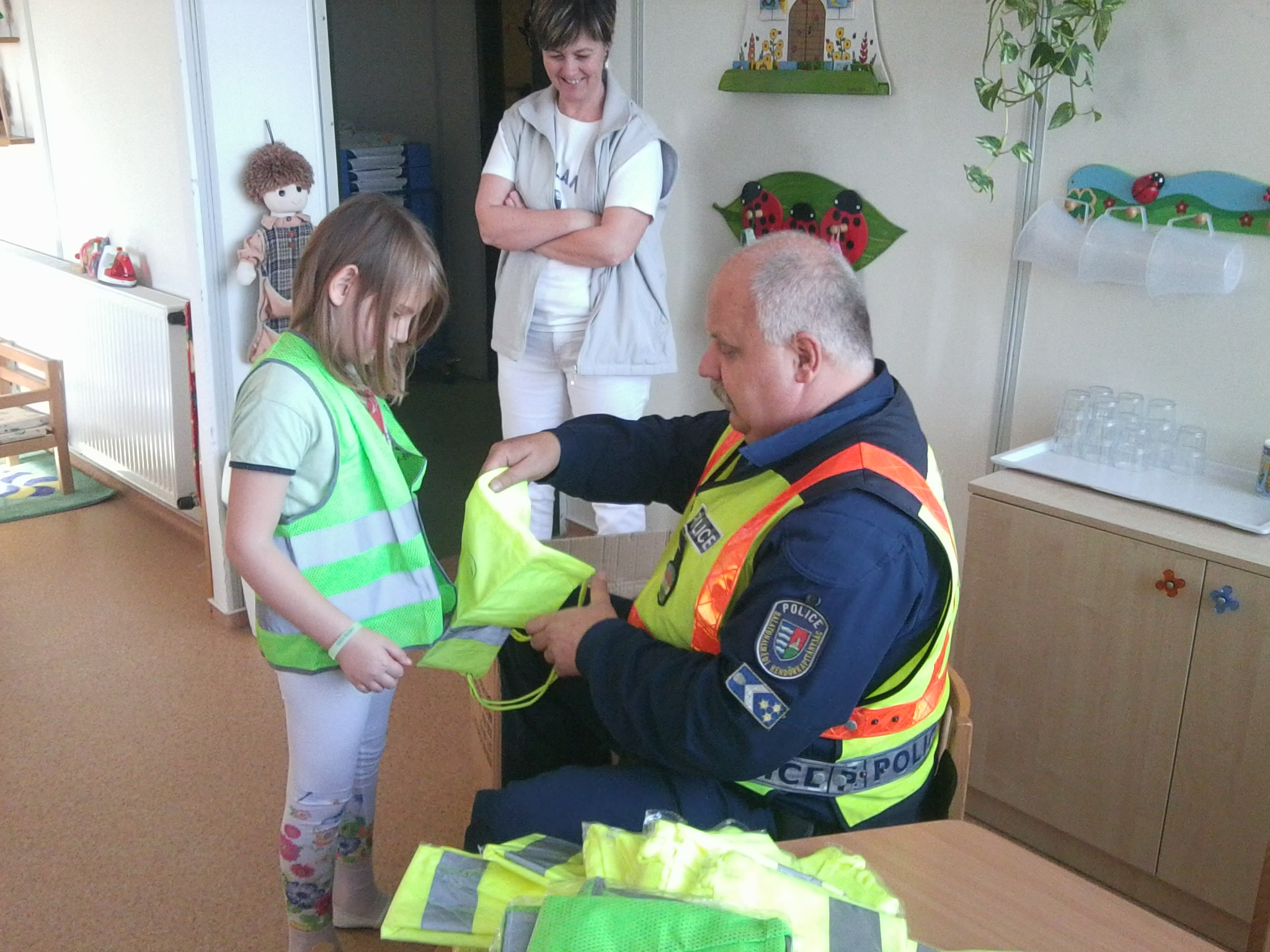 A „Látni és látszani” közlekedésbiztonsági kampány keretében látogattak el kollégáink 2015. november 19-én délelőtt a Mogyoró úti óvodába. A gyerekek nagy örömmel fogadták a rendőröket, akik játékos kérdezz-felelek formájában beszélgettek a KRESZ szabályokról. A nagycsoportosok ügyesen válaszoltak az úttesten történő átkelés, az út szélén való haladás és a gyermekek kerékpárral szabályosan történő szállítására vonatkozó kérdésekre. Az óvodások „jól láthatósági„ mellényt,tornazsákot, karkötőt kaptak ajándékba.