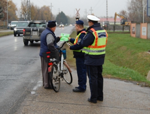 Az akció keretében a kerékpárosokat is figyelmeztették a szabályok betartásának fontosságára és nekik is adtak láthatósági mellényt, valamint lámpát.