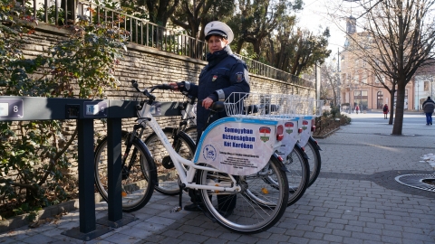 A Somogy Megyei Rendőr-főkapitányság Kaposváron több elektromos kerékpáron hívja fel a figyelmet a közlekedési szabályok betartására, amelyeket a Public Bike System Hungary Kft. biztosított.