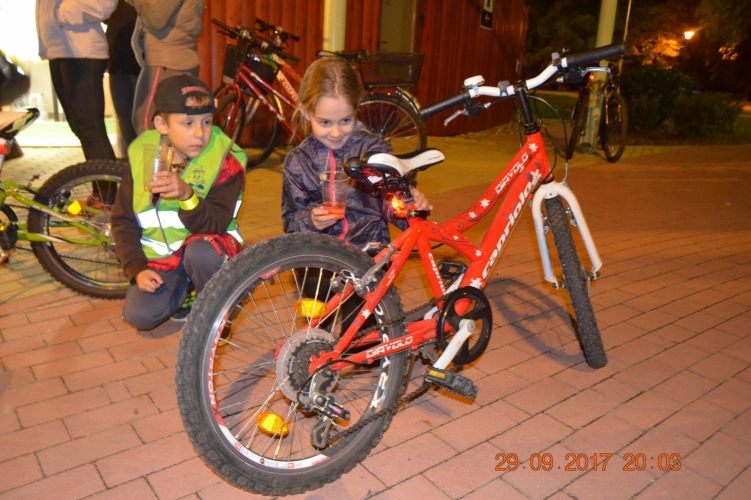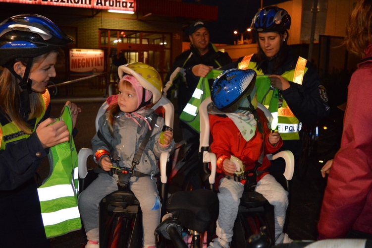 Kicsik és nagyok, családok, gyerekek a rendőrökkel közösen igyekeztek példát mutatni a lámpafényes kerékpáros felvonulással.