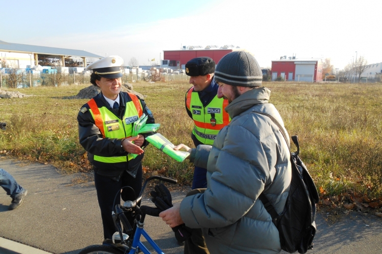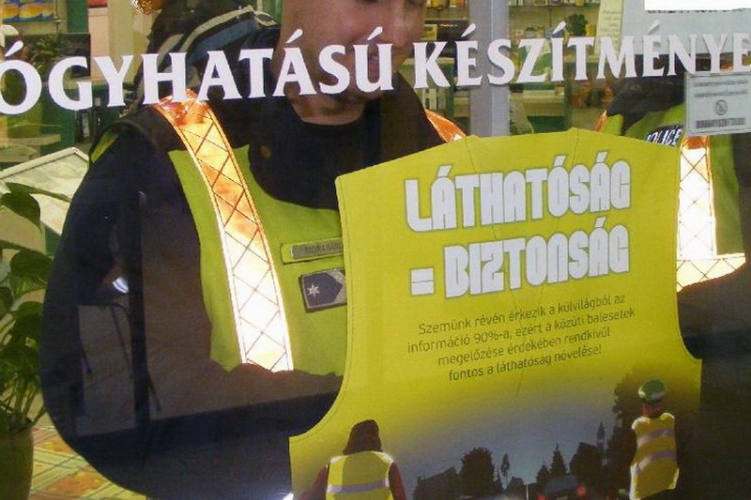 A kerékpárosokat és a gyalogosokat igyekeznek megszólítani a Békéscsabai Városi Baleset-megelőzési Bizottság munkatársai. Forgalmas helyeken ragasztottak ki a láthatóság fontosságát bemutató kiadványokat 2013. december 19-én Békéscsabán.