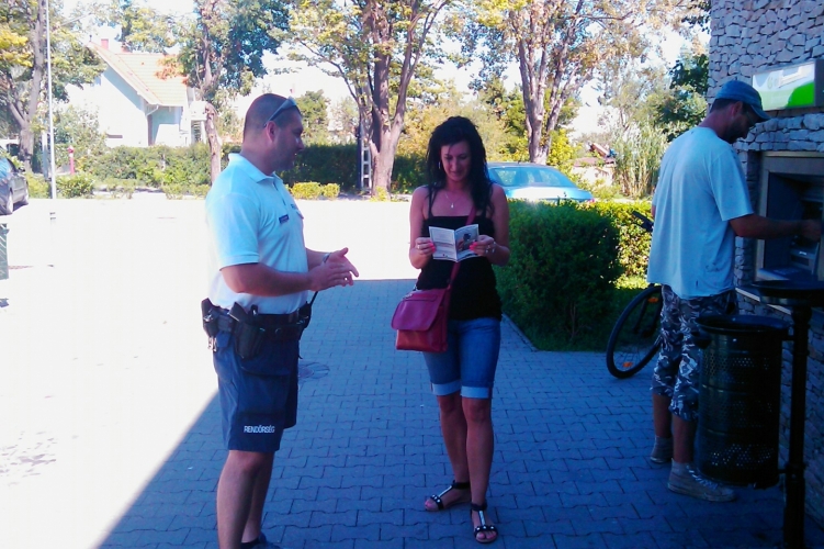 A kapitányság körzeti megbízottja, Jánka István címzetes rendőr zászlós rendészeti fakultációs diákokkal 2016. augusztus 8-án délután Balatonfüreden, a Tagore-sétányon, valamint az Arácsi utcában lévő ATM automata közelében szólította meg a járókelőket.