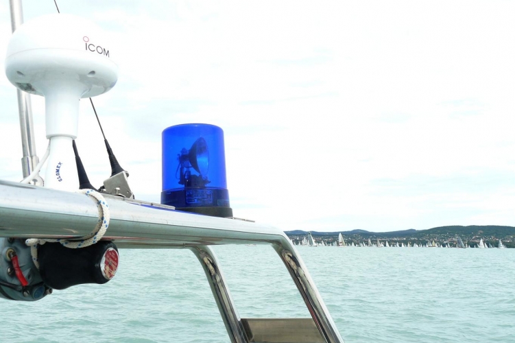Vízirendőrök ellenőriztek a verseny biztonságos lebonyolítása céljából.