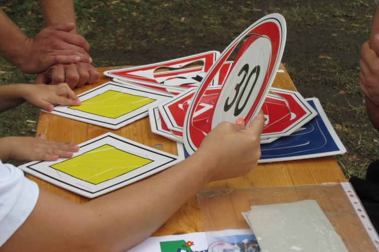 A gyerekek játékos feladatok megoldásával felelevenítették a gyalogos- és kerékpáros közlekedés legfontosabb szabályait, illetve megtekinthették és fel is próbálhatták a rendőrség által használt csapaterős felszerelést is.