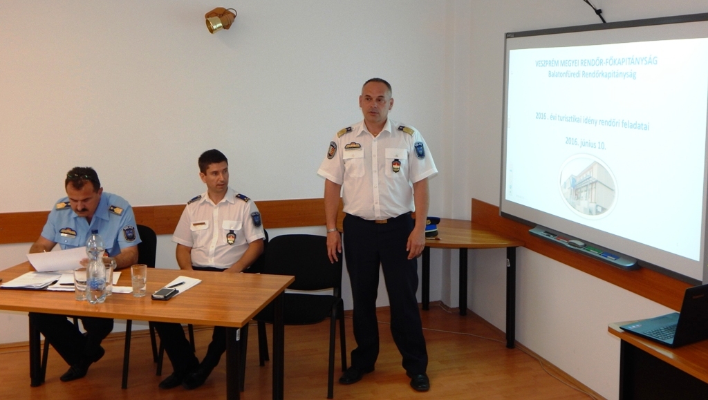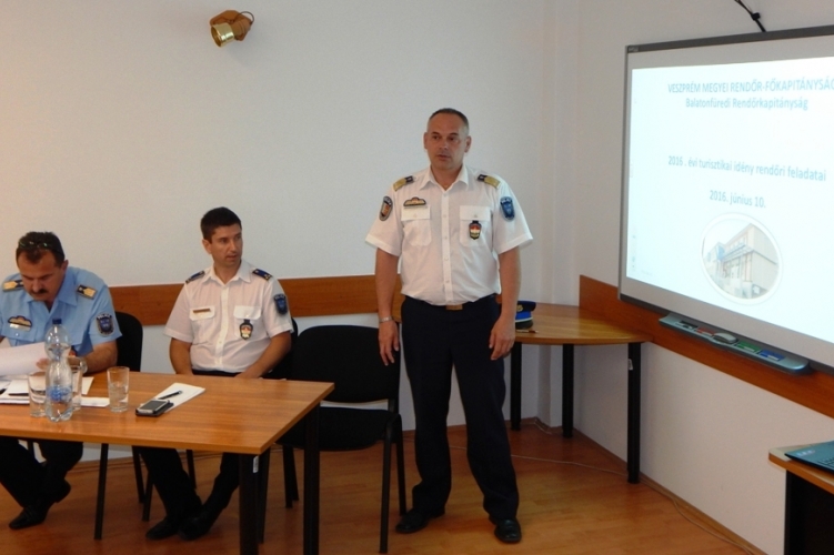 A nyári idegenforgalomra történő rendőri felkészülés jegyében tartottak megbeszélést a Balatonfüredi Rendőrkapitányságon.
