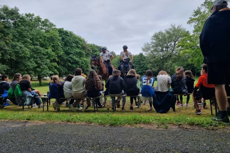 A Balaton-parti rendőrkapitányságok lovas járőrei Csopakra látogattak el táborozó gyerekekhez.