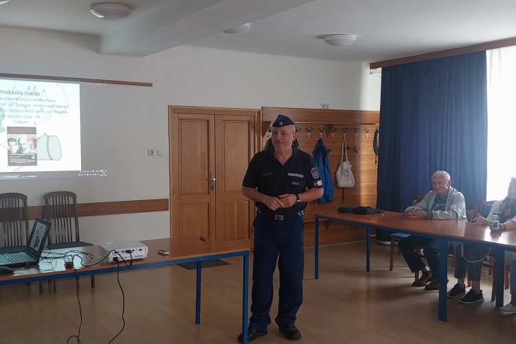 A helyi nyugdíjasoknak tartott bűnmegelőzési foglalkozást a megelőzési előadó.