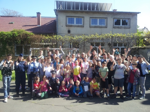 A bemutató végén a rendőrök és a diákok közös csoportképet készítettek, ahol jelnyelven fejezték ki köszönetüket.