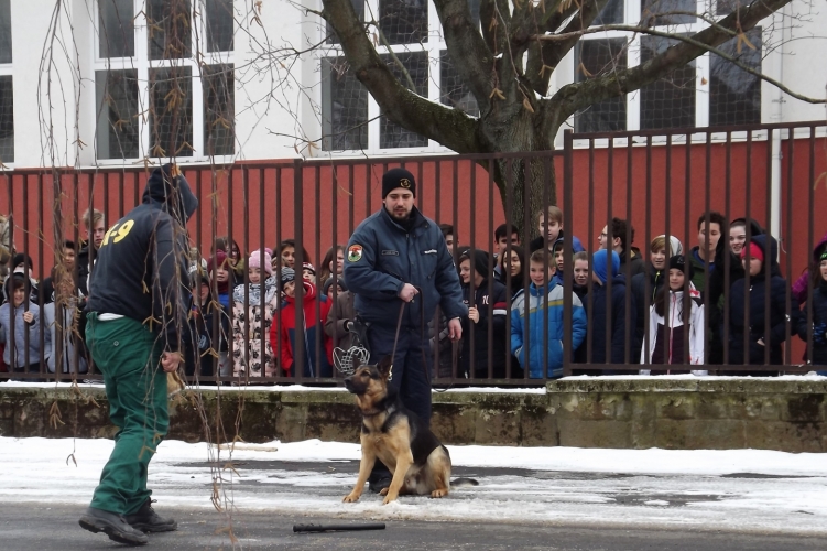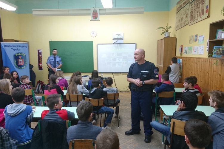 A várpalotai rendőrök bűnmegelőzési előadásokat és kutyás bemutatót tartottak egy általános iskola diákjainak.