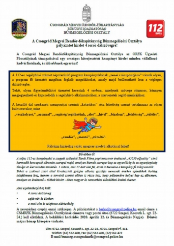 A Csongrád Megyei Rendőr-főkapitányság interaktív sajtótájékoztatóval csatlakozott - a két hívásfogadó központ Szombathely és Miskolc mellett - a „112-es európai segélyhívószám napjához”. Európa szerte 2009. óta február 11-én különféle programokkal, kampányokkal irányítják a figyelmet a tagállamok a 112-es segélyhívó népszerűsítésére.