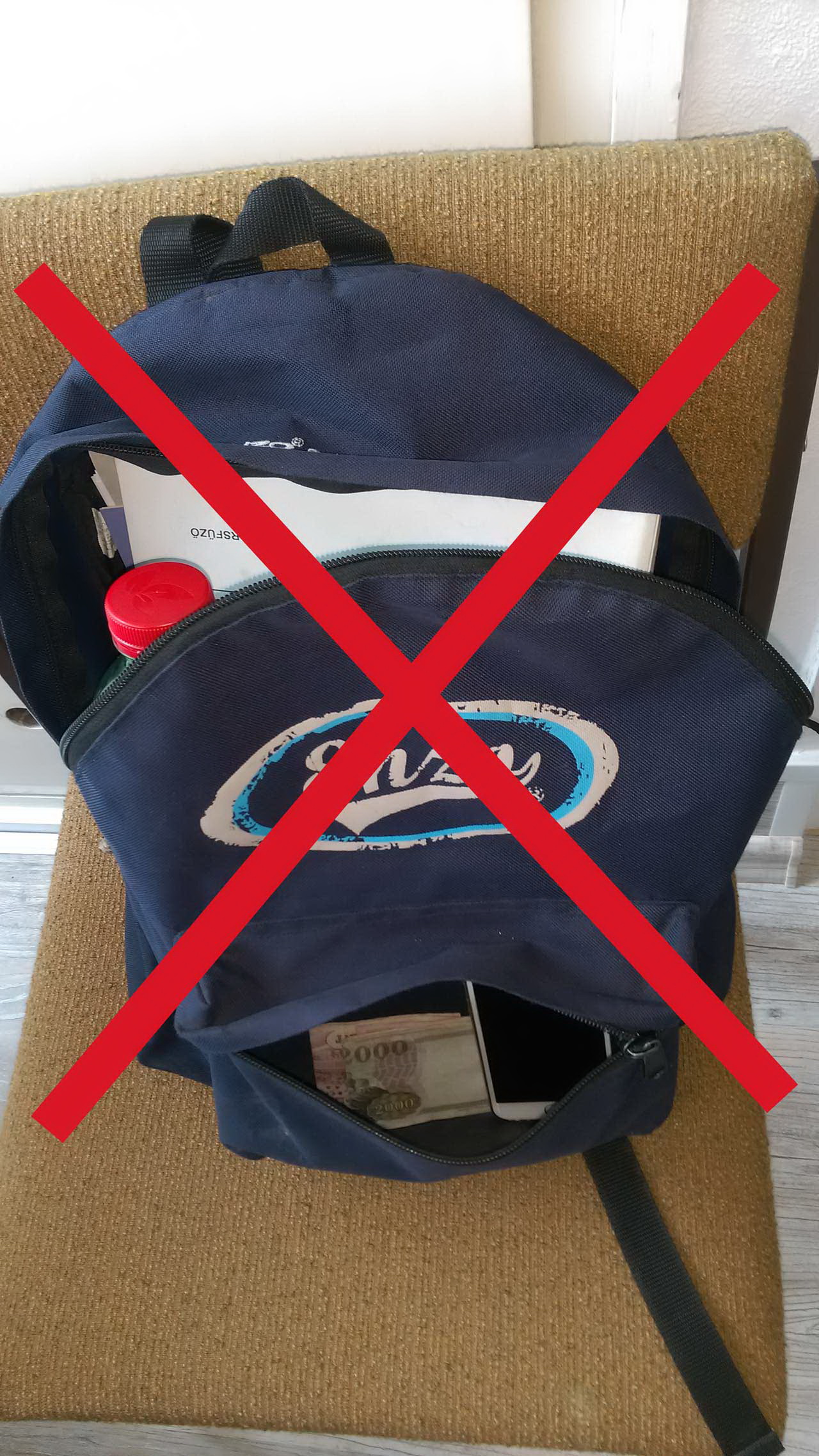 - A táskákba soha ne tároljon értékeket, különösen ne a külső rekeszekbe, mert azokhoz egy ügyes tolvaj még akkor is észrevétlenül hozzáférhet, ha a diák a hátán viseli azt.