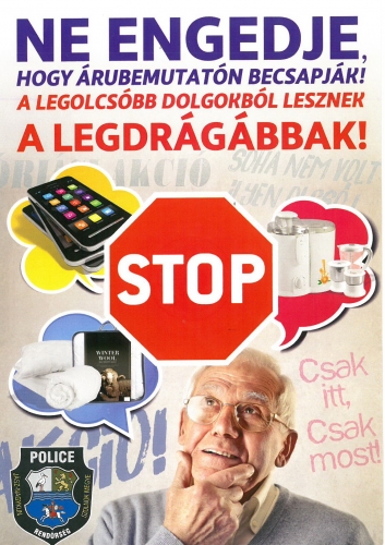 Ezúton szeretnénk a lakosok figyelmét felhívni az elkövetési magatartás jellemző elemeire, valamint a védekezés lehetőségeire. Lehetőleg tájékozódjanak az árakról, legyenek gyanakvóbbak, ha hasonló meghívást kapnak! Azonnal ne írjanak alá szerződést, hiszen ezzel hivatalossá és törvényessé tehetik a megállapodást! Gondolják át, mit írnak alá és mit vállalnak!
