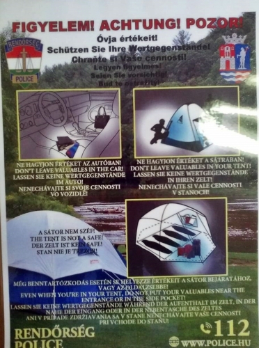 - Értékeit ne hagyja szem előtt a sátor mellett parkoló autóban, pénzét, okmányait tartsa magánál!