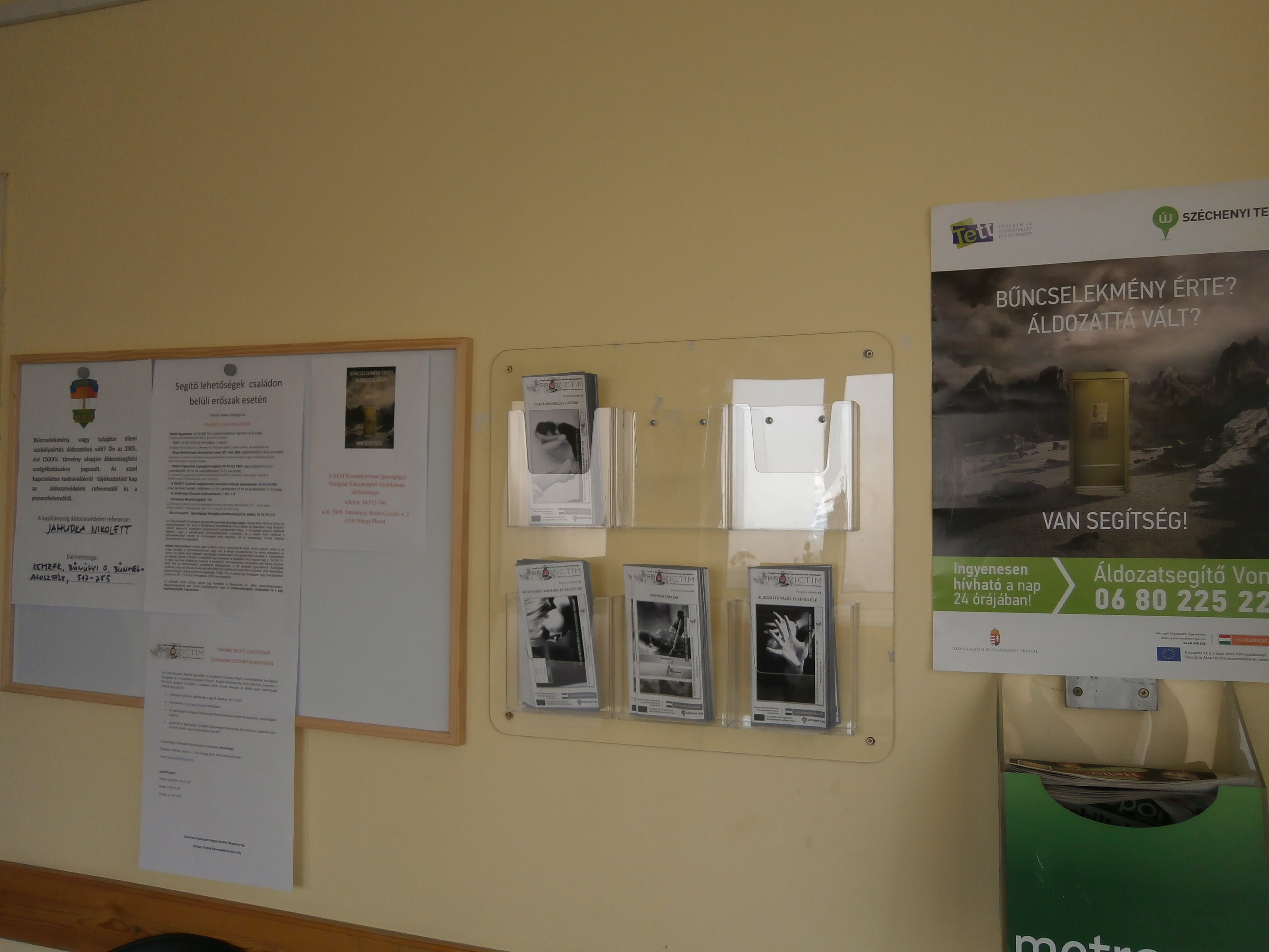 Az ügyfélvárókban új, színvonalas tájékoztató táblákat és szóróanyag tartókat helyezünk el. A bűncselekmények, tulajdon elleni szabálysértések áldozatai tájékozódhatnak az áldozatsegítési lehetőségekről már az ügyfélvárókban, azonban személyesen is információt kapnak a lehetőségekről a panaszfelvevőktől. A TÁMOP 5.6.1-C pályázati támogatású Provictim projekt keretében készült szóróanyagok rendelkezésre állnak, ezek tanácsot adnak a következő témakörökben: