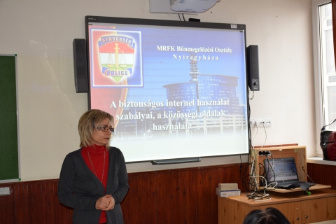 Az internet használata ma már a mindennapok része minden korosztály számára. A mai fiatalok meglepő magabiztossággal mozognak a világhálón, miközben talán eszükbe sem jut, hogy az internet által nyújtott nagyszerű lehetőségek veszélyeket is rejtenek. 2017. február 7-én a biztonságos internet napján (Safer Internet Day) a Szabolcs-Szatmár-Bereg Megyei Rendőr-főkapitányság Bűnmegelőzési Osztályának munkatársai a megye több iskolájában tartanak előadásokat a világháló veszélyeiről, a biztonságos internetezésről. Az előadók célja a figyelemfelhívás, a gyerekek tudatos és elővigyázatos felhasználói tevékenységre nevelése. Rávilágítanak arra, hogy az általuk nyilvánosságra hozott személyes adatok és információk milyen kockázatot jelentenek számukra és adott esetben környezetükre, családtagjaikra is.