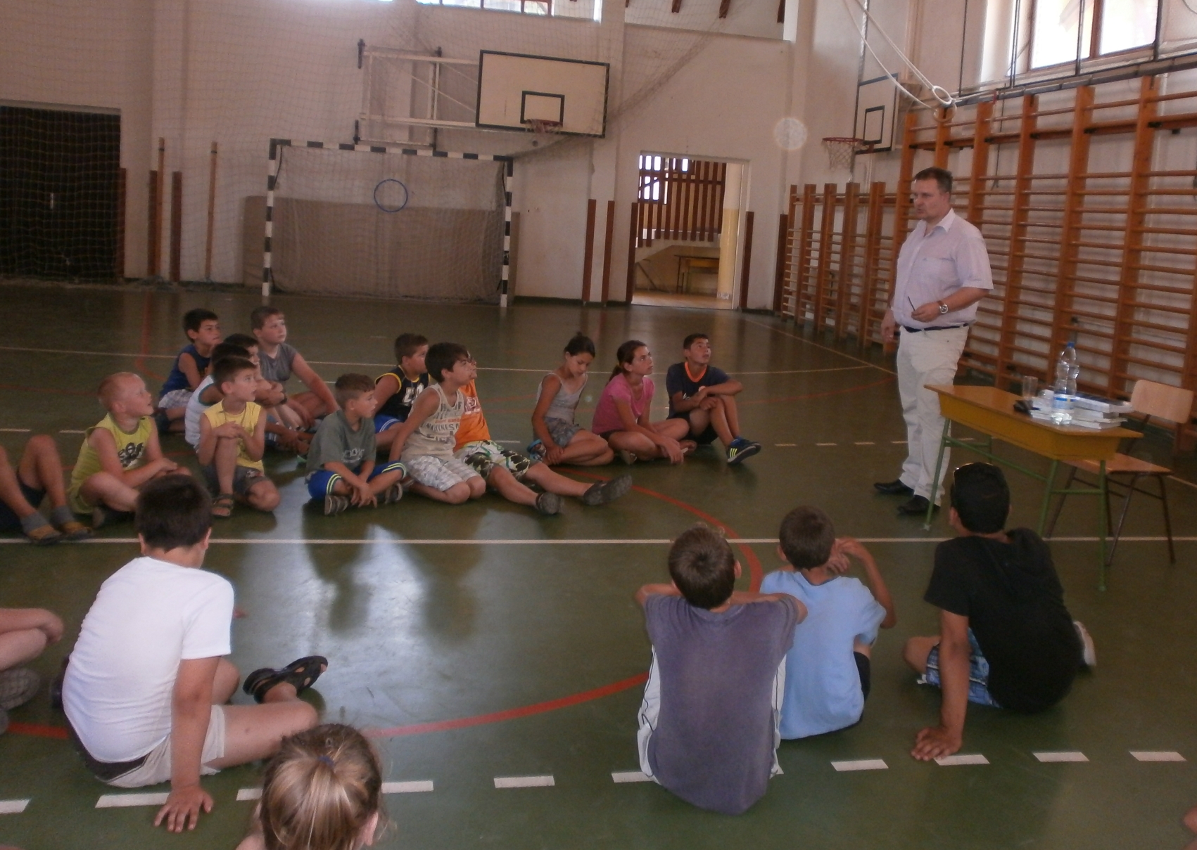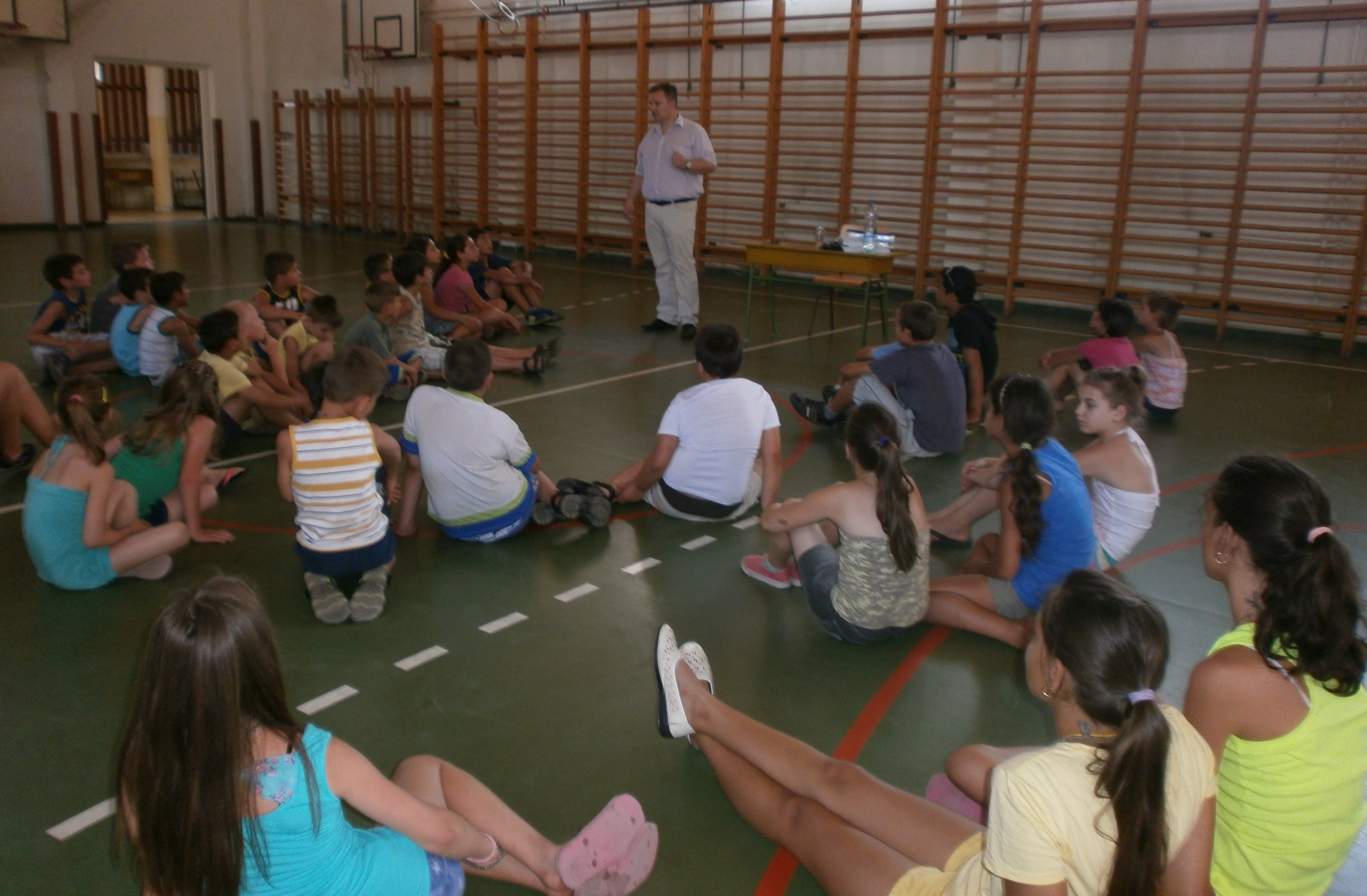 A táborban Dr. Juhász Zoltán r. alezredes a Bűnmegelőzési Osztály munkatársa a 10-14 éves diákoknak arról tartott előadást, hogy a szünidő milyen veszélyeket rejthet magában a bűnelkövetés, az áldozattá válás, illetve a közlekedésbiztonság szempontjából.