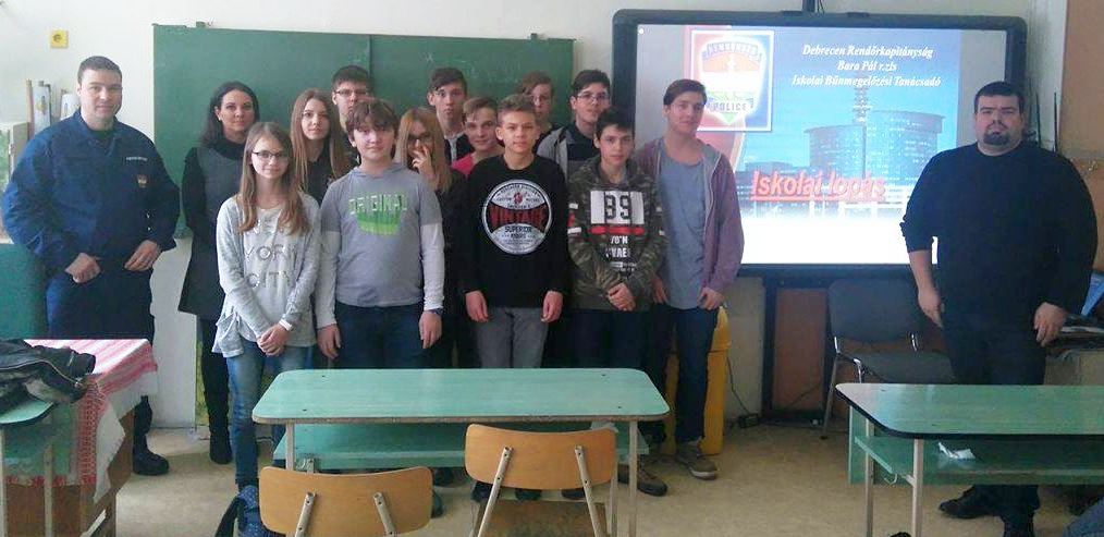 A Bara Pál r. zászlós és Bereczki Dóra r. főtörzsőrmester bűnmegelőzési előadók Lénárt Lajos r. zászlós, körzeti megbízottal közösen 2017 februárjában négy osztályban, közel 90 főnek tartott bűnmegelőzési előadást a debreceni Dózsa György Általános Iskolában. A rendőrök célja az volt, hogy az iskolások figyelmét felhívják olyan személy és vagyon elleni bűncselekmények veszélyeire, amelyekkel ők is találkozhatnak. Ismertették továbbá az egyenruhások azokat a jogsértéseket, amelyek a felelőtlen internethasználat során bekövetkezhetnek, majd hasznos tanácsokkal szolgáltak a diákoknak arra vonatkozóan, hogy mit kell tenniük ahhoz, hogy ne váljanak bűncselekmények áldozataivá.