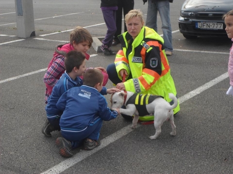 Fejes Rózsa rendőr főtörzszászlós és Mancs kutya bemutatója főleg a kicsik számára jelentett élményt.