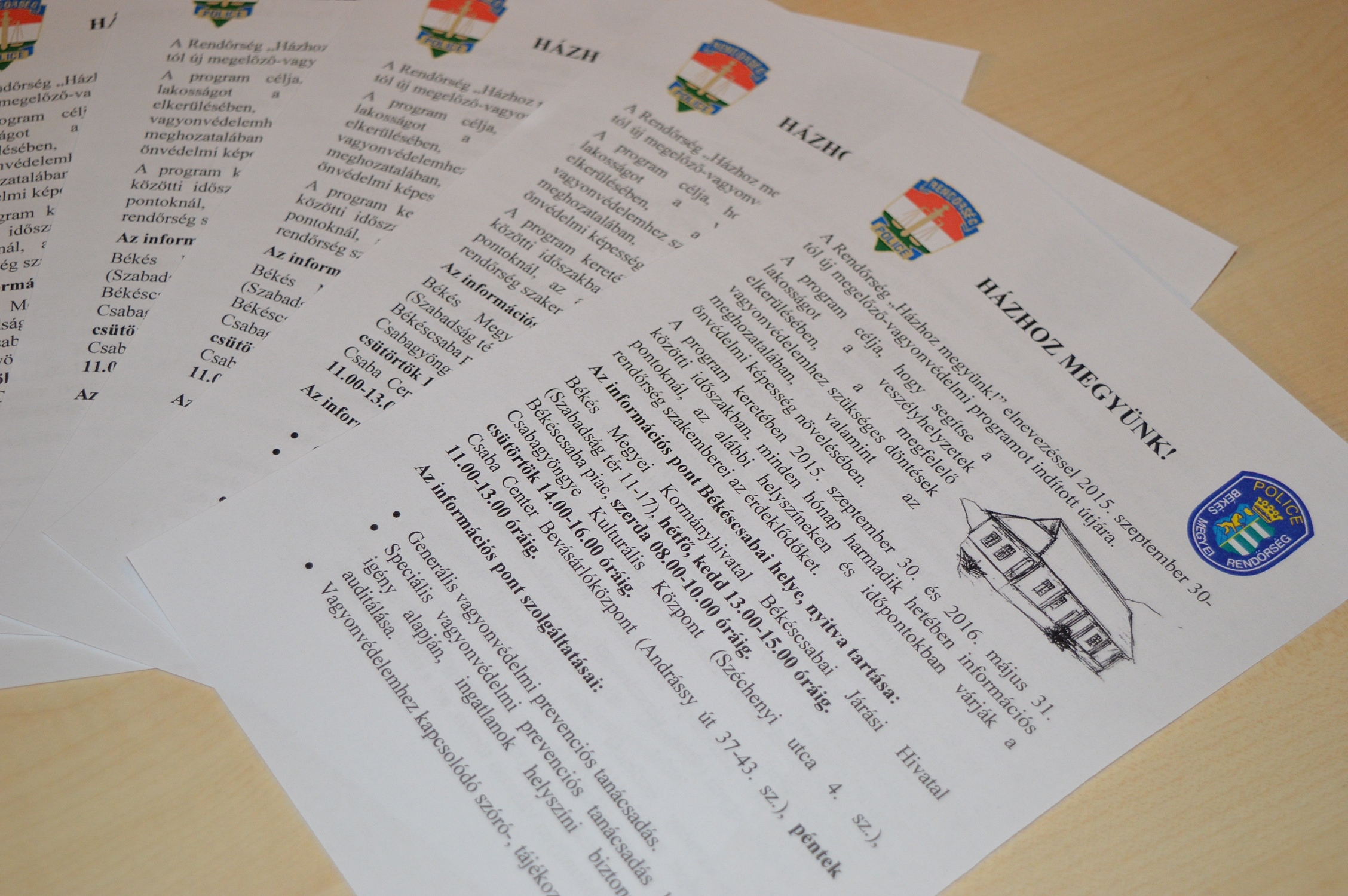Békés megyében Békéscsabán, Orosházán és Szarvason létesít a rendőrség információs pontokat, ahol 2016. május 26-áig vagyonvédelmi kiadványokkal és tanácsadással várják a szakemberek az érdeklődőket.