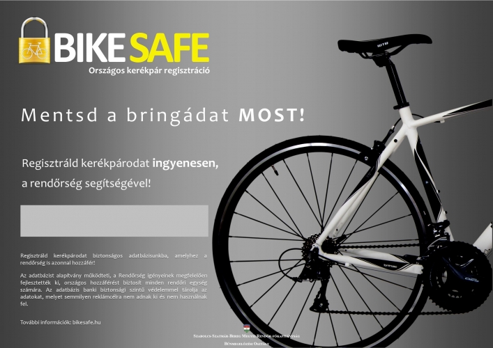 6. Regisztrálja biciklijét a rendőrség által elindított "BikeSafe" vagyonvédelmi programban, melyről bővebb tájékoztatást a www.bikesafe.hu honlapon keresztül olvashat.