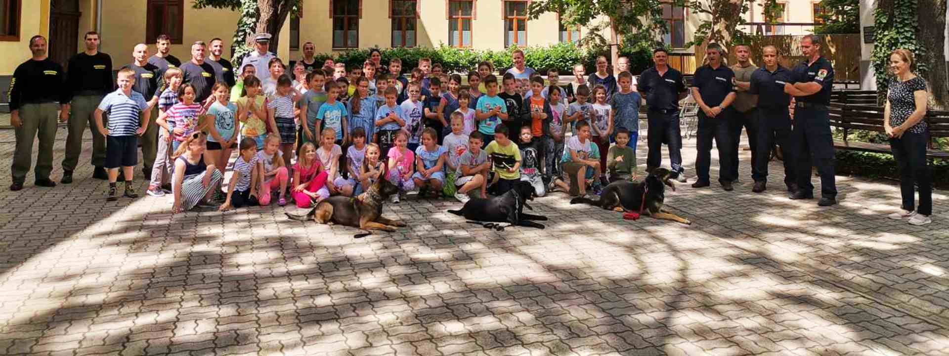 Ezt követően a Hajdú-Bihar Megyei Rendőr-főkapitányság, Bűnügyi Technikai Osztály kutyás rendőrei bemutatták, hogyan segíti a mindennapi munkájukat egy szolgálati eb. A program zárásaként az Oktatási és Kiképzési Alosztály munkatársai vészhelyzeti magatartási szituációkat, intézkedéstaktikai elemeket és egyéb érdekességeket mutattak meg a gyerekeknek.