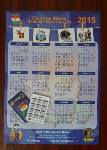 A Csongrád Megyei Rendőr-főkapitányság a 2015-ös esztendőre is elkészítette bűnmegelőzési témájú naptárait.
