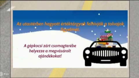 Az út a biztonságba következő állomásai az autó és az otthon. Az utastérben hagyott értéktárgyak felhívják a tolvajok figyelmét. A gépkocsi zárt csomagterébe helyezze a megvásárolt ajándékokat.
