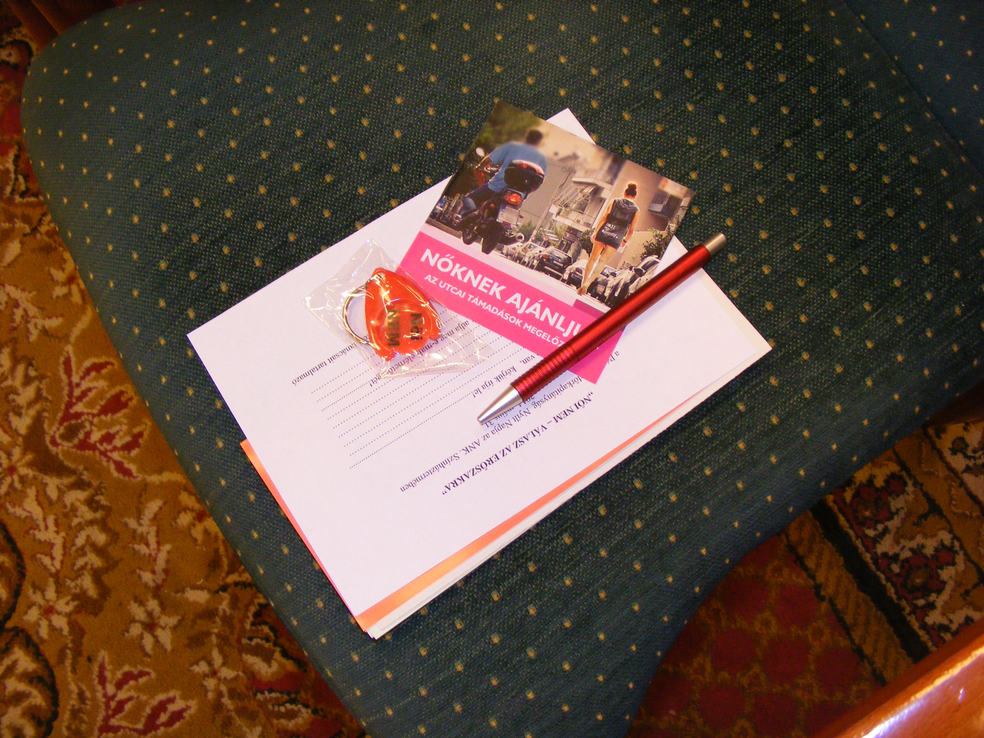 A résztvevők a Pécs-Baranya Közbiztonsági Alapítvány pályázati támogatása jóvoltából kisebb ajándékokkal – tollal, kulcstartóval –, valamint a NANE által biztosított szóróanyagokkal térhettek haza. Az eseményen a Szociális és Gyermekvédelmi Főigazgatóság Baranya Megyei Kirendeltségének igazgatója, és a Gyermekvédelmi Központ vezetője is részt vett, akikkel a további együttműködés lehetősége is szóba került.