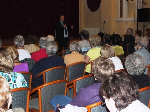 A megyei rendőr-főkapitányság nevében az „Idősek Világnapja” alkalmából Dr. Juhász Zoltán r. alezredes köszöntötte 2014. október 20-án a megjelent közel 100 nyugdíjast, majd egy közelmúltban történt bűncselekmény tanulságait osztotta meg a hallgatósággal. Az ügyben az elkövetők trükkös módon a 84 éves sértett bizalmába férkőztek, majd a lakásába bejutottak és kirabolták az idős hölgyet. Az eset kapcsán az osztályvezető elmondta a nyugdíjasoknak, hogy az említett jogsértés hogyan lett volna elkerülhető.