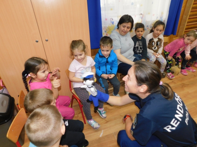 A rendőrök a bábok segítségével magyarázták el az ovisoknak, hogy ki az idegen, mit mondhatnak el idegen embernek magukról és a családjukról. Felhívták a figyelmet, hogy ha egyedül otthon tartózkodnak, mik a fontos tudnivalók; telefonálás, idegenek beengedése a lakásba. Az előadáson a közlekedés szabályaival is ismerkedtek az ovisok.