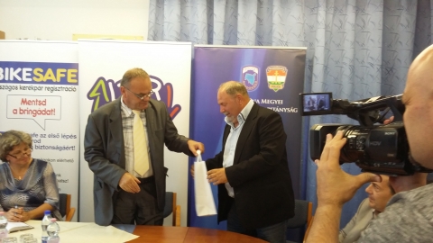 A sajtótájékoztatón Dr. Soczó László r. dandártábornok, rendőrségi főtanácsos, megyei rendőrfőkapitány köszöntötte a megjelenteket, majd emlékplakettet adott át Horváth Zsolt dunaföldvári polgármester úrnak a „Házhoz megyünk” vagyonvédelmi vetélkedőn való tisztes helytállásért, valamint a kiváló együttműködésért.