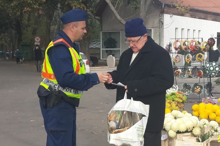 A nagyobb forgalmú sírkertekben a rendőrök mellett polgárőrök és önkéntes közösségi szolgálatukat teljesítő diákok is figyelnek az emberek vagyonbiztonságára és a zavartalan közlekedésre.