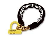 Lánc-lakat kombinációk: Ez a legelterjedtebb a motorosok körében is, ahol a kerékpárnál jóval nagyobb értéket kell védeni. Kétféle változat létezik, egyik az integrált záras, a másiknál külön kell feltenni a lakatot a láncra. Utóbbi előnye, hogy a lakat bármikor kicserélhető. Mivel a lánc rész nagyon erős, ezért itt a zárra kell nagyobb figyelmet fordítani, mert onnan “várható” inkább próbálkozás a feltörésre. Hátránya, hogy súlyra igencsak nehéz, ezért a hordozás körülményes lehet. A rövidebb típusokat fel lehet tekerni a nyeregcsőre és úgy szállítani.