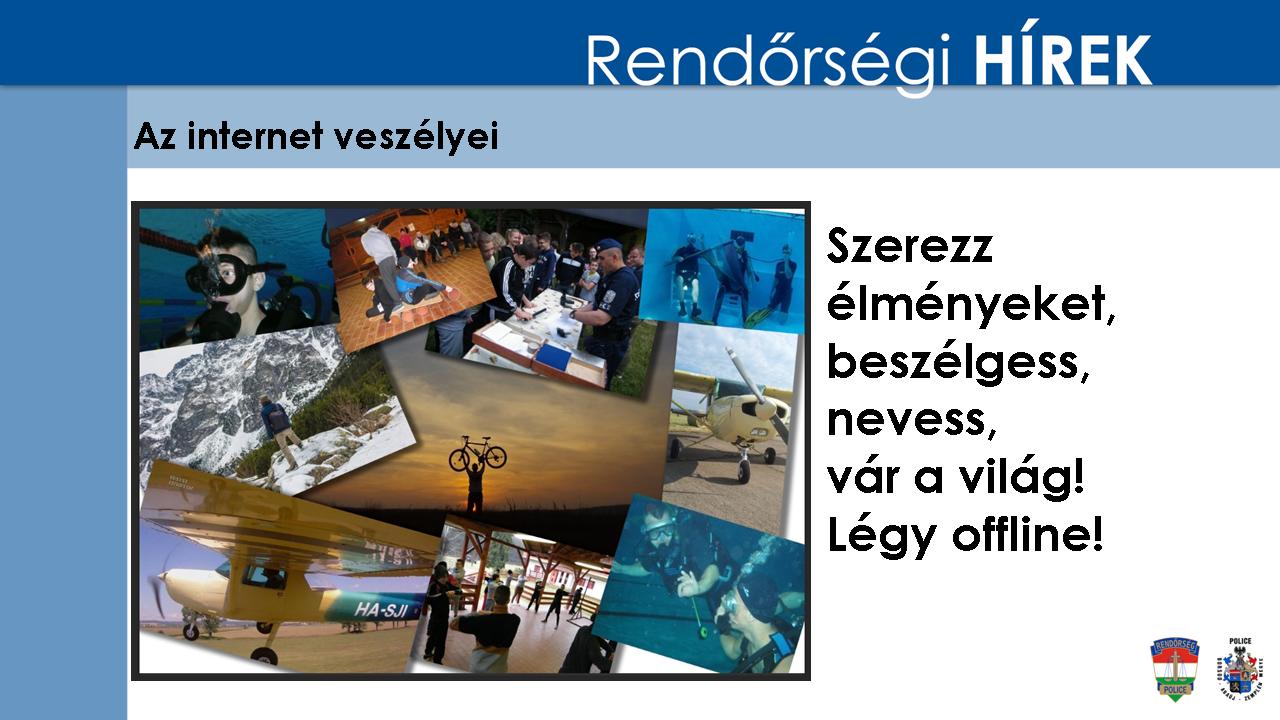 A baleset- és bűnmegelőzés fontosságát mindig szem előtt tartva „szerezz élményeket, beszélgess, nevess, vár a világ! Légy offline!”
