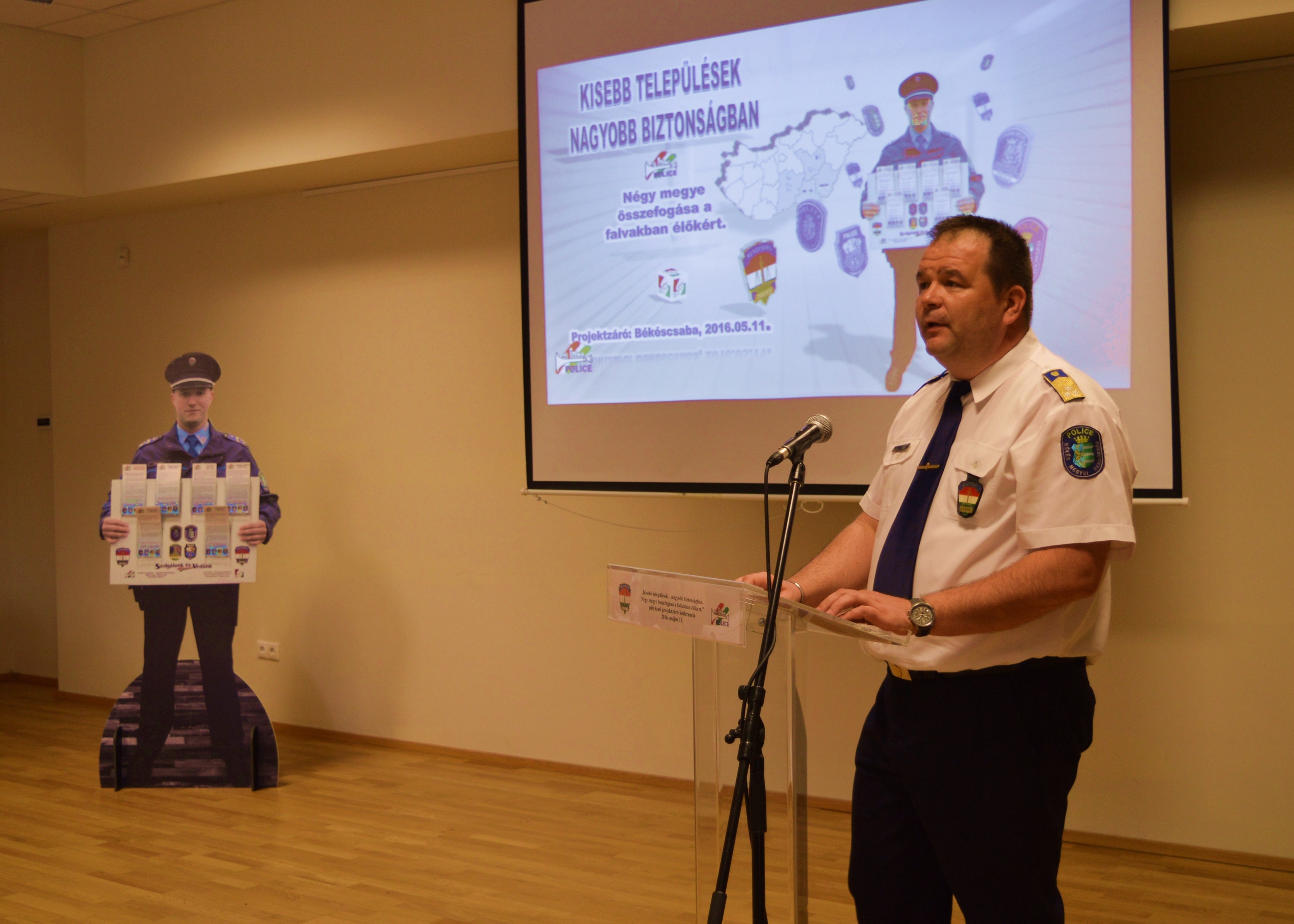 Száz alföldi faluban életnagyságú rendőr makett és rajta a bűncselekmények megelőzését szolgáló tanácsokat tartalmazó szórólapok várják a helyieket. A bűnmegelőzési információs pontokat a rendőrség hozta létre a Bács-Kiskun, Békés, Csongrád és Jász-Nagykun-Szolnok megyékben 2016 januárjában elindított programja keretében. A Békés Megyei Rendőr-főkapitányság kezdeményezése nyomán „Kistelepülések nagyobb biztonságban - Négy megye összefogása a falvakban élőkért” címmel létrejött együttműködés eredményéről 2016. május 11-én tartottak konferenciát Békéscsabán.