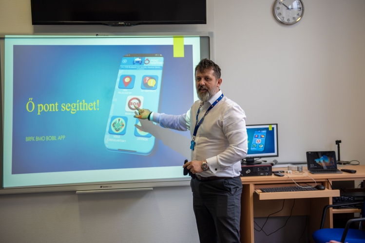 Oláh-Paulon László r. alezredes a Bűnmegelőzési Osztály vezetője egy új applikációt mutatott be a diákoknak, amelyet bármelyik okostelefonra le lehet tölteni. Az app hasznos bűnmegelőzési tanácsokat tartalmaz.