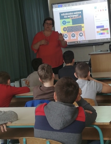 Koós Judit r. alezredes, a X. kerületi bűnmegelőzési előadó a Móra Ferenc Általános Iskolában tartott előadást az internet biztonságos használatáról.