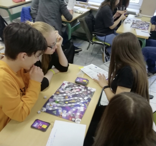Ugyanebben az iskolában a kisebb gyerekek a “lájkvadász” bűnmegelőzési társasjátékkal játszottak.