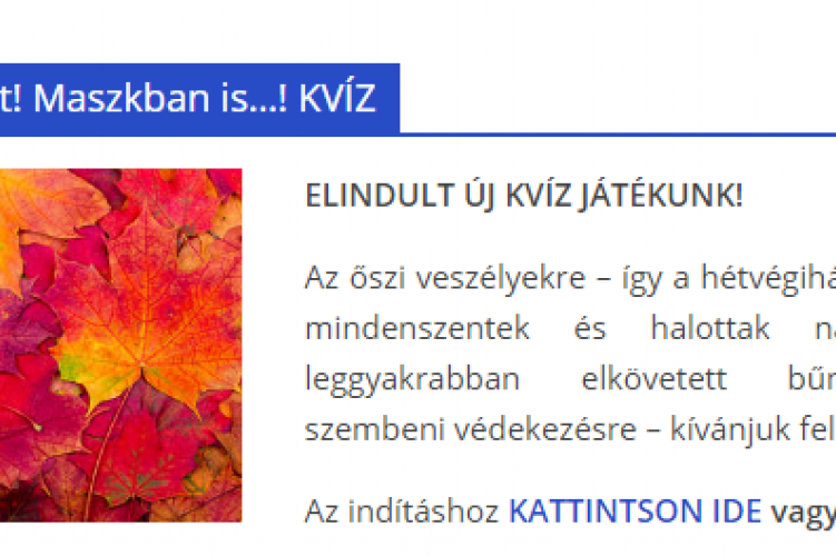 Őszi kvízjátékunk a bunmegelozes.eu oldalon érhető el.