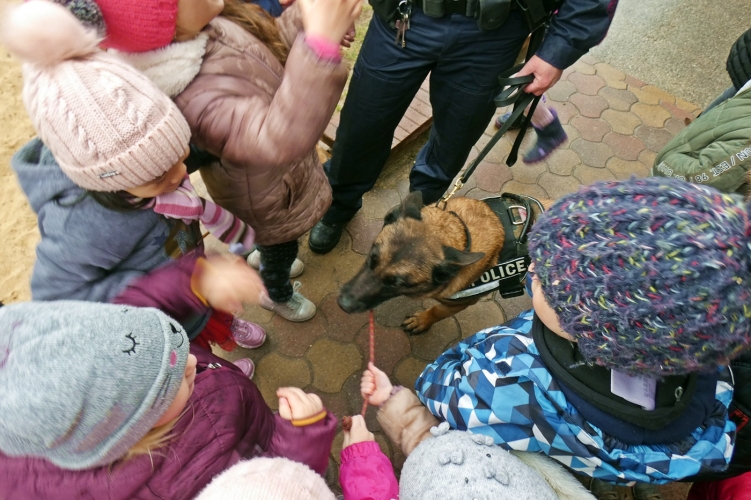 Óvodásoknak rendeztek kutyás bemutatót és bűnmegelőzési foglalkozást a Balatonfüredi Rendőrkapitányság munkatársai.