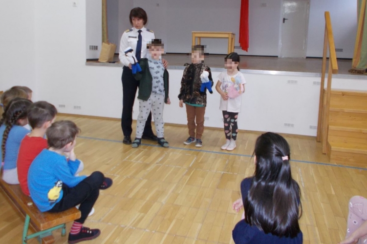 A rendőrök a hivatásukról és az idegenekkel való ismerkedés szabályairól is beszélgettek a nagycsoportosokkal.