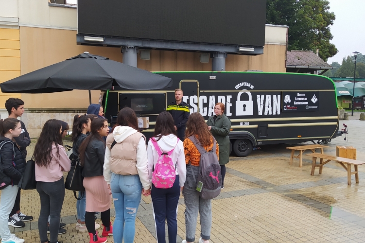 A holland rendőrség szabadulószobának berendezett lakóautója az emberkereskedelem, valamint a prostitúció visszaszorítására hívta fel a fiatalok figyelmét.